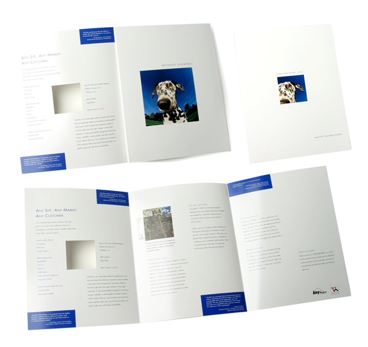 ANYSITE TECHNOLOGIES: Full color brochure. Art direction, Design, production and co-copy writing.